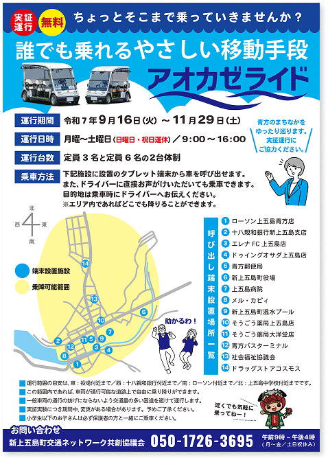 このサイトでは、新上五島町の交通課題を解決するための試みと学びをみなさまにご共有します。